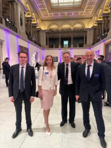 During the Prayer Breakfast in Brussels at the European Parliament, a meeting took place with the participation of Oleksandr Peshko, who serves as the Vice President of the World Diplomatic Council on Global Security; Member of the Verkhovna Rada of Ukraine Yuliia Hryhorivna Yatsyk; Academician, Head of the World Diplomatic Council on Global Security, Doctor of Economic Sciences and Doctor of Philosophy in the field of Medicine Anatolii Volodymyrovych Peshko; as well as our very well-known and truly respected friend Oleh Pervak. They are shown in the photo from left to right.